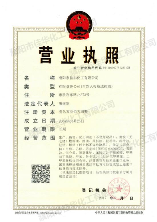 由濮陽市工商局、濮陽市消費者協會、濮陽市工信局、濮陽市誠信濮商聯合會聯辦,由濮陽佳華化工有限公司協辦的濮陽市第三屆誠信論壇在濮陽佳華化工有限公司隆重舉行。本次論壇的主題是“誠信經營與綠色發展?!?/p> 2021-01-15